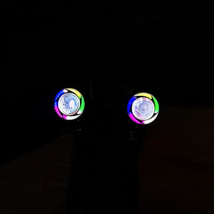 - Освещение. Две большие передние фары с линзами «ангельские глазки», которые не только освещают дорогу, но и придают эстетическую привлекательность. Для безопасности на дороге предусмотрены также задние габариты и боковая подсветка