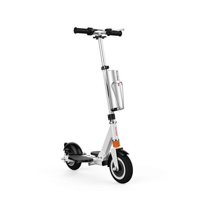 Самое главное, что вам нужно знать об AIRWHEEL Z3: на руле располагается не бутылка для воды, а съёмный аккумулятор! Да-да, именно съёмный аккумулятор, на котором располагается кнопка включения и гнёзда для подключения проводов. Такая конструкция открывает сразу два плюса.