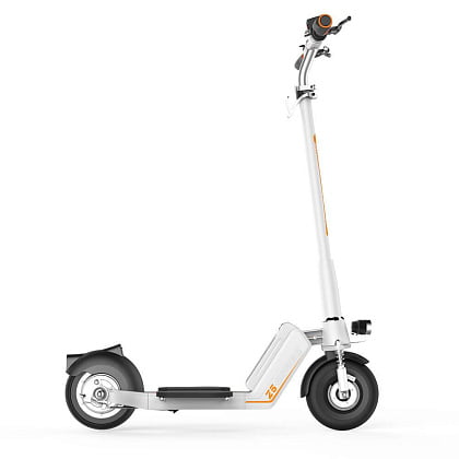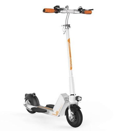 Рама данной модели выполнена из алюминиево-магниевого сплава, благодаря чему имеет высокую прочность и небольшой вес. Airwheel Z5 имеет удобную систему складывания, обеспечивающую удобство при транспортировке и хранении. Двойной амортизатор в сочетании с 8-дюймовыми колесами позволят испытывать комфорт даже во время длительных поездок. Благодаря специальному приложению для смартфона вы сможете не только настроить некоторые параметры самоката, но и получить информацию о своих поездках. Модель оснащена мощным электродвигателем 350 Вт, обеспечивающим отличный разгон и торможение. Отличный выбор для тех, кто планирует совершать частые и длительные поездки по городу.