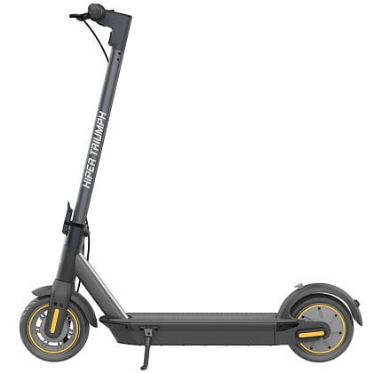 Электросамокат HIPER Triumph M100 – надежная модель с задним приводом и складным механизмом, отличающаяся высокой прочностью и способностью выдержать нагрузку до 130 кг. В основе работы представленного устройства лежит усиленный мотор мощностью 450 Вт, благодаря которому электротранспорт способен развивать скорость до 30 км/ч и преодолевать угол подъема 15 градусов. Автономная работа модели обеспечена защищенным литий-ионным аккумулятором емкостью 12.5 Ач, который гарантирует запас хода до 42 км.