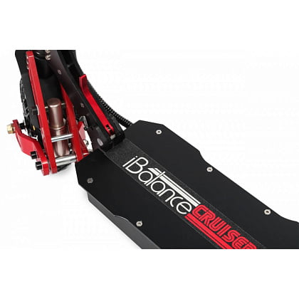 iBalance Cruise оснащен задним приводом, что так же соответствует концепции неспешных прогулок. Дека и почти все силовые элементы электросамоката сделаны из алюминия, исключением является гусь, который сделали из стали. Благодаря контроллеру на 25A iBalance Cruiser уверенно разгоняется и неплохо тянет в гору, максимальная скорость составляет 45 км/ч. За торможение отвечают дисковые гидравлические тормоза, вкупе с электронными на обоих колесах.