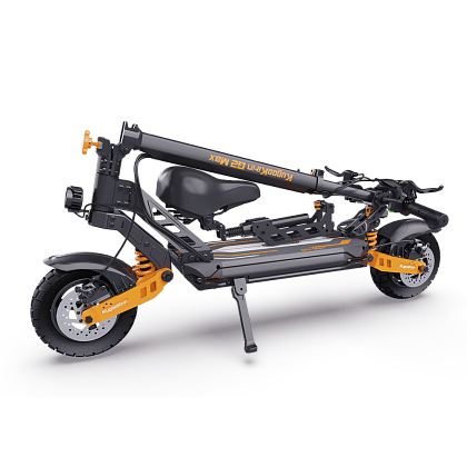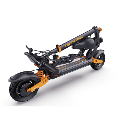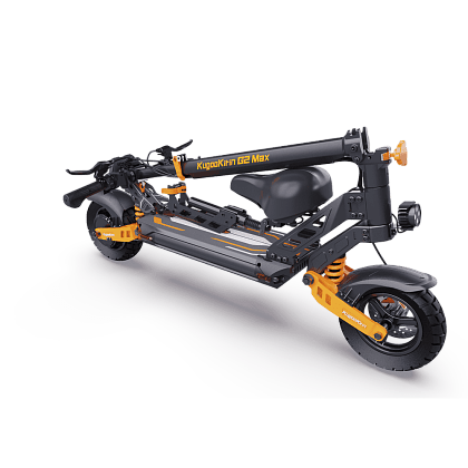 В новой модели G2 Max наконец-то переработали сиденье, теперь оно не проваливается в зажиме. При необходимости сиденье можно сложить или убрать, сам самокат также складывается до очень компактных размеров. Даже в разложенном лифте самокат поместится в классический маленький лифт панельного дома.