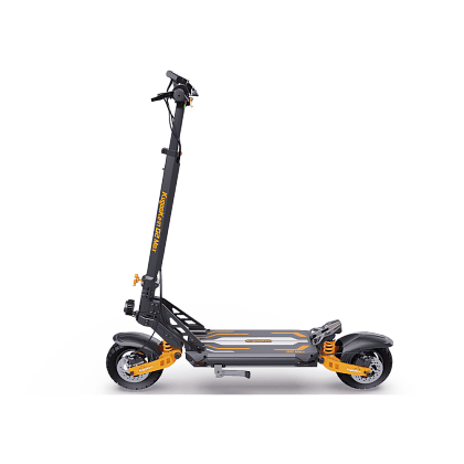 Kugoo – G2 Max! Из названия сразу становится ясно, что данная модель призвана продолжить линейку G, а именно заменить прошлогодний G2 Pro и, может быть, даже попытаться потеснить легендарный M4 Pro. G2 Max получил обновлённый дизайн, на смену резкому чёрно-красному сочетанию пришло более сдержанное, но не менее стильное сочетание тёмно-серого с жёлтым. Сама же дека у G2 Max повторяет дизайн G2 Pro с небольшими изменениями. Визуально новенький Kugoo Kirin G2 Max 2023 ни с чем другим не перепутаешь, он сильно выделяется на фоне других электросамокатов. Вместе с дизайном обновились и характеристики электросамоката.