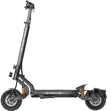 Kugoo Kirin G2 Pro Max - Космический дизайн этого самоката внушает доверие. А большие ярко-оранжевые пружины амортизаторов испугают любой бордюр.
