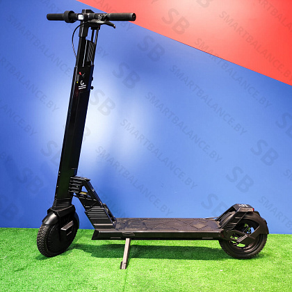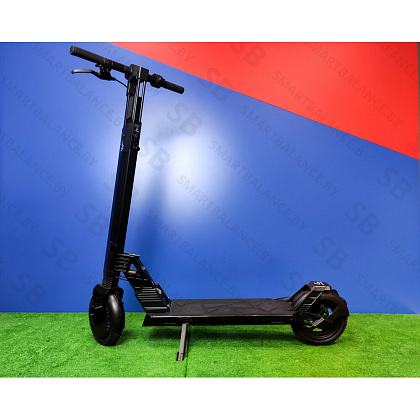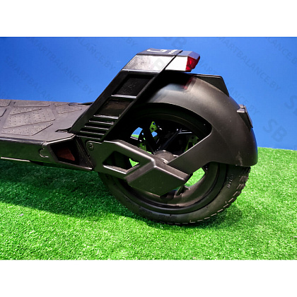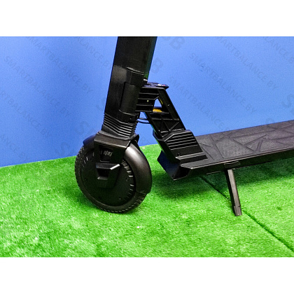 Мотор-колесо расположено спереди. Колеса пневматические, сзади установлена система амортизации. Материалы самоката очень качественные и отлично подогнаны.