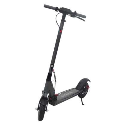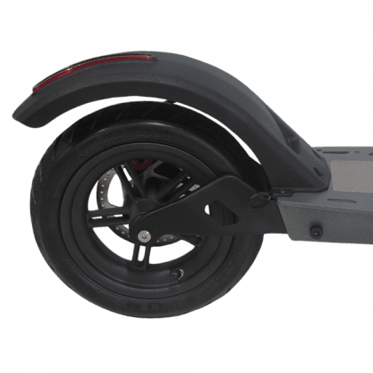 Колеса мини-транспорта “обуты” в надувные покрышки. Так ход будет мягче, и вы не заметите препятствий. Размер колес городского электросамоката — 8.5 дюймов. Они образуют клиренс 12 сантиметров, с которым можно не бояться заезжать на бордюры — нижняя часть деки останется целой.