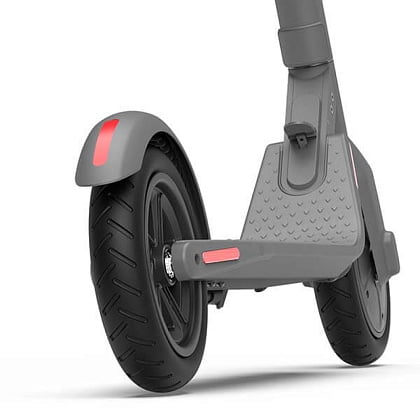Мотор-колесо электросамоката Найнбот Кикскутер Е22 расположено спереди и имеет мощность в 300W, максимальную скорость до 25 км/ч. Запас хода у самоката до 25 км.