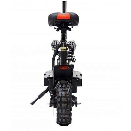 - Перед вами очень комфортный самокат. Газово-масляные амортизаторы смягчают удары о дорожное покрытие. Вы не почувствуете дискомфорта при движении по грунтовым дорогам и бездорожью. Производители оснастили модель удобным сиденьем, которое при необходимости легко складывается.
