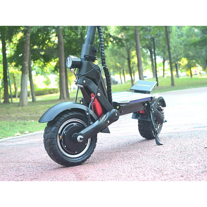 В новой модели отлично сочетается цена, практичность и эксплуатационные свойства. Все детали транспорта изготовлены из долговечных высокопрочных материалов. Удобный электрический самокат оснащен быстрой системой складывания, пневматической подвеской, передними и задними гидравлическими дисковыми тормозами. Надувные 10-ти дюймовые колеса обеспечивает комфортную езду.
