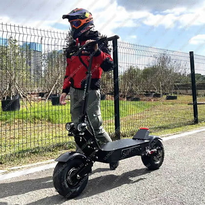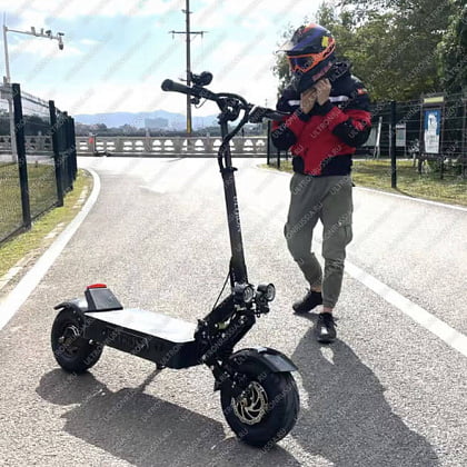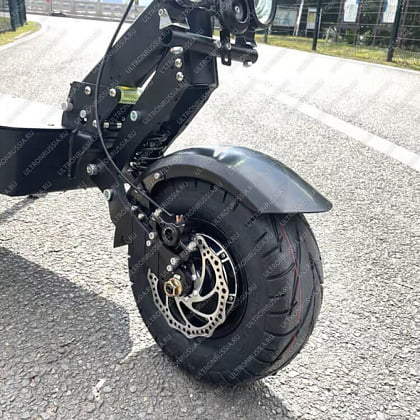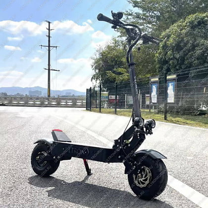 Электросамокат Ultron X5 – это новая модель от известного бренда ULTRON. Самокат оснащен полным приводом, суммарной мощностью 3200 W, это позволяет быстро разгонять транспортное средство до 75-80 км/ч. На устройство установлена аккумуляторная батарея емкостью 35Ah/60V, благодаря этому можно преодолеть расстояние до 90 км. Для восстановления заряда потребуется 10-12 часов. Собственная масса самоката составляет 42 кг, максимальная грузоподъемность 150 кг. Для комфорта поездки транспорт оснащен усовершенствованной подвеской маятникового типа.