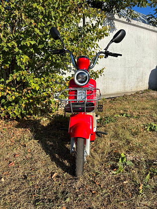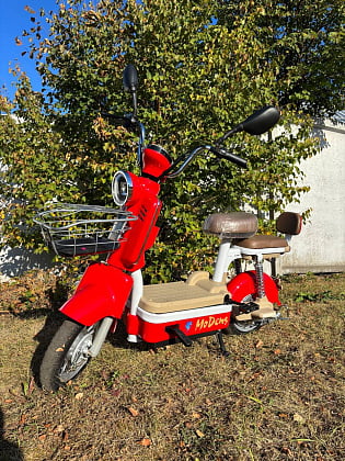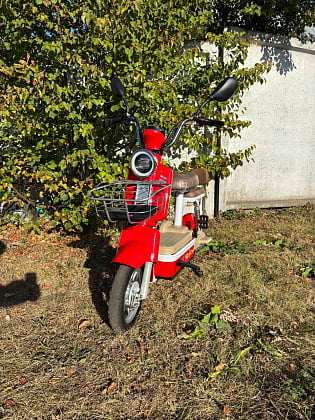 Электромопед с ведущим задним мотор-колесом - надёжным бесщёточным электродвигателем мощностью 500 Вт. Комфорт езды обеспечивают передняя вилка амортизатор и пара пружинных амортизаторов сзади.