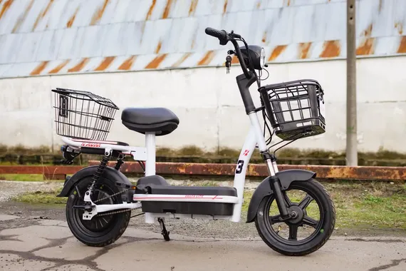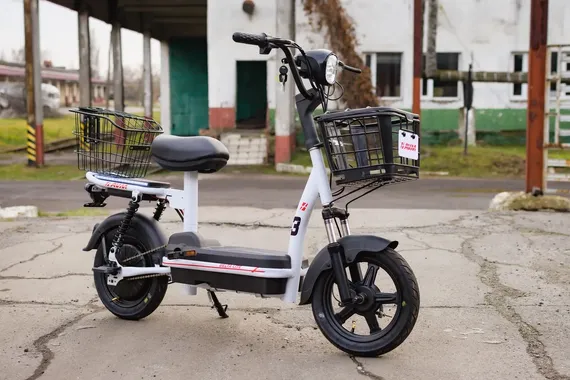 • Передвигаться на скутере можно в трех режимах: 1) Режим велосипеда - водитель крутит педали, скутер едет; 2) Режим мопеда - на ручке газа водитель увеличивает мощность, скутер едет без использования педалей; 3) Режим ассистента - совмещаете работу педалями и ручкой газа.