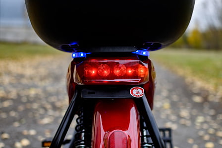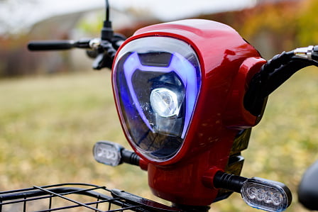 - Большая передняя светодиодная фара, поворотники и задний стоп-сигнал для безопасности передвижения