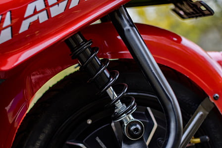 - Передний и задний амортизаторы гарантируют комфортную поездку даже по неровным дорогам