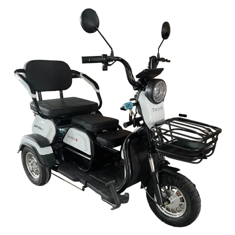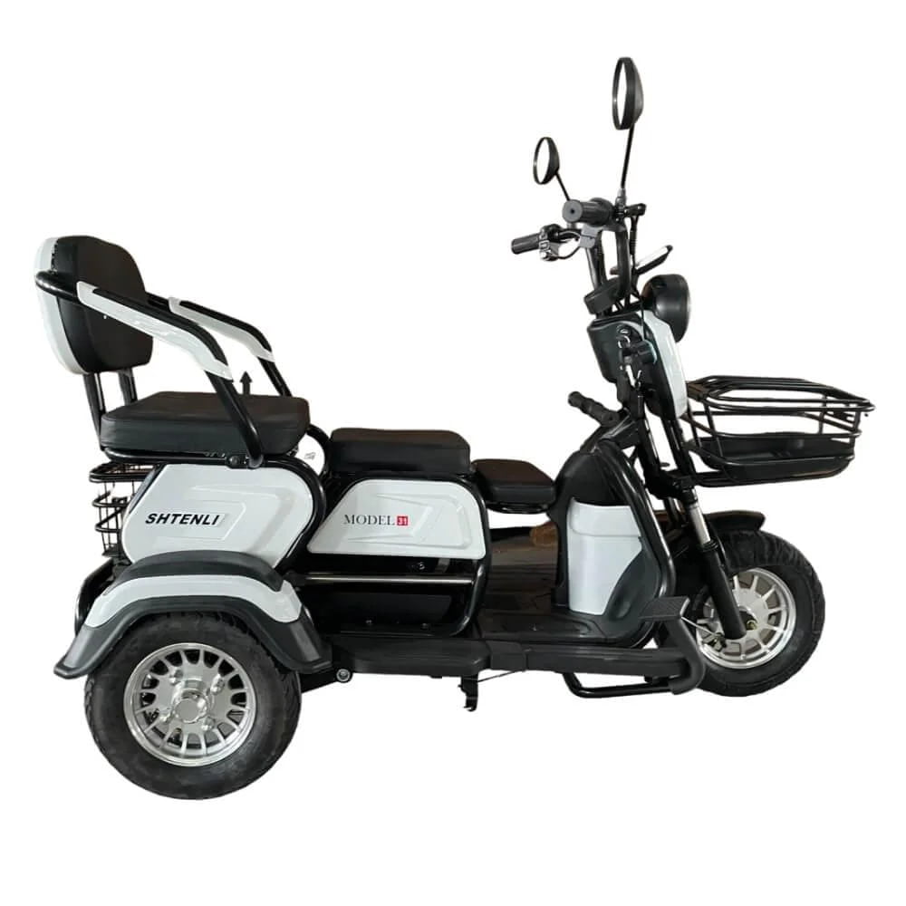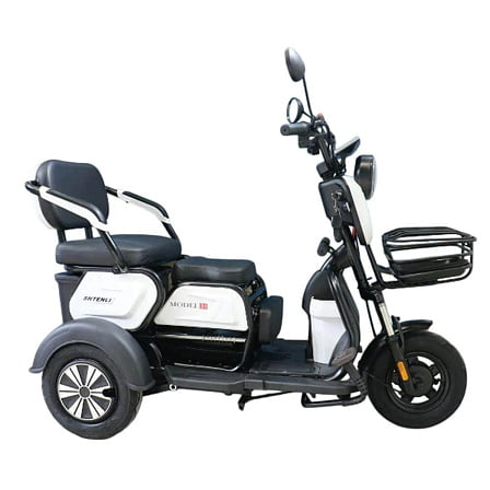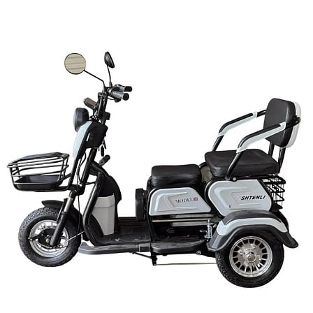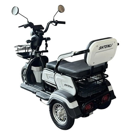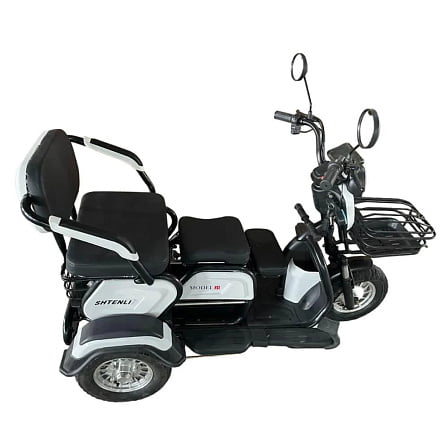 Трехколесный электроскутер Shtenli Model 31 SLA - это трехместный электроскутер трицикл с аккумулятором 48v20Аh и мощным мотором на 750W. Его дальность пробега до 40 км.