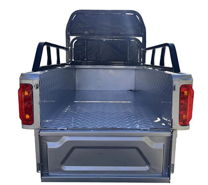 Кузов самосвального типа, опрокидывается вручную. Грузоподъемность 300 кг в щадящем режиме.