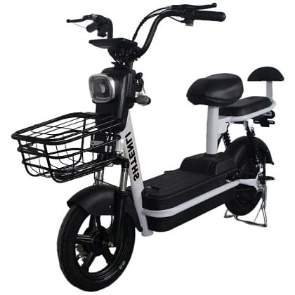 В скутере предусмотрены педали. При их помощи можно доехать до места назначения, как на обычном велосипеде, если так случится что у вас сядет аккумулятор. Электроскутер полноразмерный, водитель с ростом 175см будет чувствовать себя комфортно, места для ног предостаточно. Электроскутер будет незаменимым помощником в небольших населенных пунктах, где нет заправочных станций и запасать бензин в канистрах неудобно.