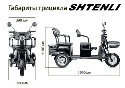 Электроскутер Shtenli Model 40 (XL) 48V 20ah - это четырехместный электроскутер трицикл с аккумулятором 48v20А и мощным мотором на 1000W.