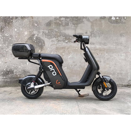 Электроскутер Kugoo V PROпредназначен для езды по городу. Электромотор обладает мощностью 600 Вт. Аккумулятор имеет емкость 17,8 Ач и напряжение 60 В. Скутер оснащен двойным сидением и задним багажником для перевозки грузов.