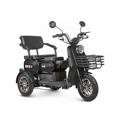 Трехколесный электроскутер Rutrike Патрон идеально подходит для семейных поездок: конструкцией предусмотрено целых три посадочных места: основное и дополнительное, а также небольшое сиденье для ребенка, которое можно разложить перед седлом водителя. А вместительный багажник и достаточно большая передняя корзина позволяют транспортировать небольшие грузы, делая пассажирский трицикл еще более функциональным! Багажник надежно запирается на ключ.