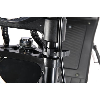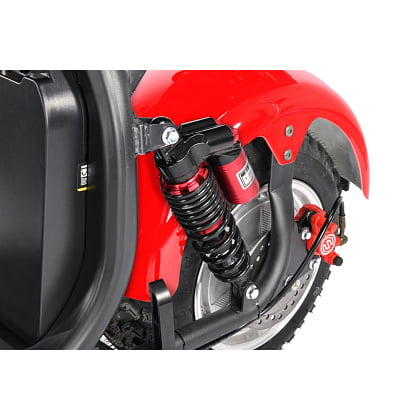 Оборудован передним и задним амортизаторами, что обеспечивает отличную амортизацию и позволяет справляться с неровностями дороги. Большие пневматические шины, обеспечивают хорошее сцепление с дорогой и плавное движение.