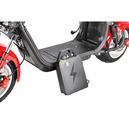- Мощный двигатель 3950 Вт позволяет развивать скорость до 65 км/ч