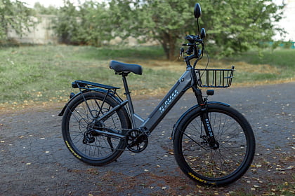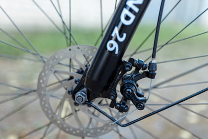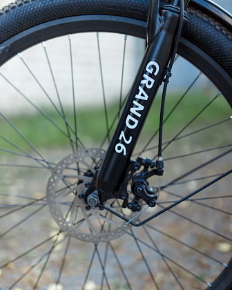 - Колеса размером 26 дюймов обеспечивают отличное сцепление с дорогой, мягкий ход и надежную проходимость по разным типам покрытия.
