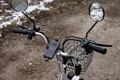 • Для езды доступно 3 режима: 1) режим велосипеда - мотор отключен, только педали; 2) режим мопеда - только при помощи мотора, зажав ручку газа; 3) режим ассистента - небольшое усилие на педали передает энергию на мотор, после чего включается двигатель и велосипед стремительно ускоряется.