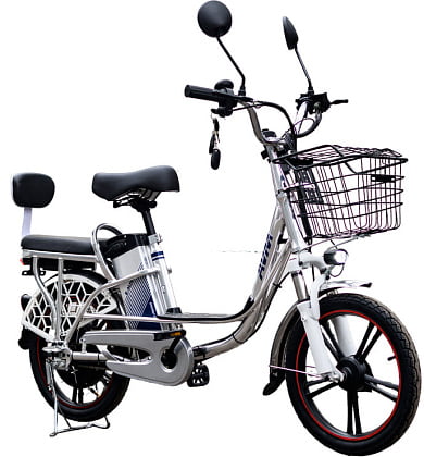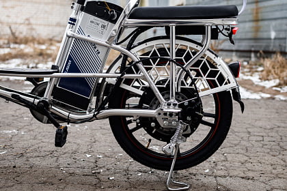 • Велосипед оборудован сиденьем для второго пассажира, общая грузоподъемность до 150 кг. Вместо сиденья со спинкой при использовании велосипеда в службе доставки, можно установить площадку для крепления бокса доставки.