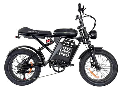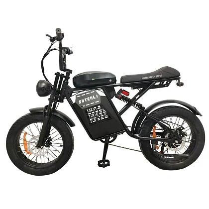 – это электробайк, выполненный в формате полноразмерного велосипеда, оборудованный легкосъемным литий-ионным аккумулятором 48V емкостью 13Ah. Электродвигатель мощностью 250W обеспечивает мягкий старт и уверенный разгон. Колеса размером 20 дюймов с шириной 4.0 оснащены широкими мотоциклетными покрышками. Безопасность обеспечивается дисковыми тормозами спереди и сзади. Прочная рама из стали выдерживает максимальную нагрузку до 150 кг. Комфортное седло анатомической формы и амортизаторы гарантируют удобство передвижения по дорогам с любым покрытием.