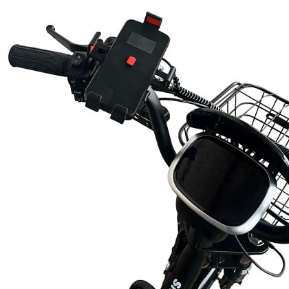 На дисплее, расположенном на руле, отображается информация о заряде батареи, скорости и других важных данных, а также размещены ручка газа, держатель для телефона с USB-зарядкой и другие элементы управления.
