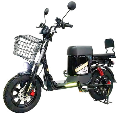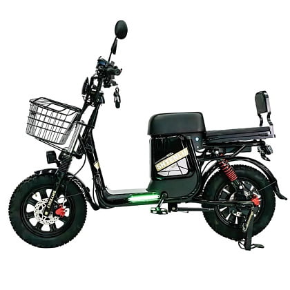 Надежность и безопасность обеспечены прочной стальной рамой, рассчитанной на максимальную нагрузку до 150 кг, позволяет перевозить значительный груз или комфортно ездить вдвоем. Устойчивость на дороге гарантируют ударопрочные колеса размером 16x3 дюйма с широкой шиной и грязевым протектором, которые отлично справляются с неровностями дорожного покрытия.