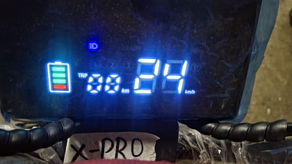 На руле расположен эргономичный информационный дисплей: отображает уровень заряда батареи, пробег, скоростной режим, там же на руле есть звуковой сигнал, ручка газа.