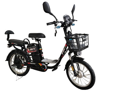 Для перевозки вещей электровелосипед оснащен вместительной корзиной.