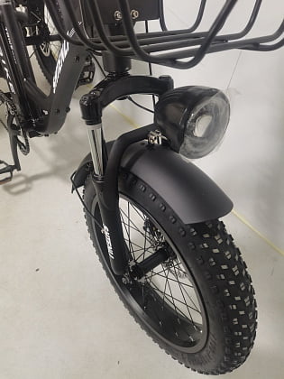 Для перевозки вещей электровелосипед оснащен двумя вместительными корзинами.