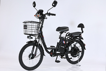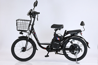 Установлена металлическая корзина на руле, а также есть место для пассажира, которое можно демонтировать и заменить на велобагажник.