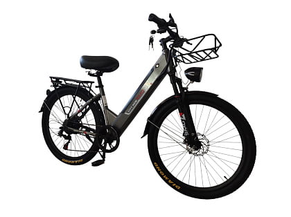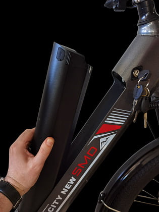 Электровелосипед SMD CITY NEW хоть и носит название городского велосипеда, он также придётся по вкусу жителям сельской местности. Передняя вилка у этого велосипеда амортизационная, что в сочетании с достаточно большими 26 колёсами с пневматическими шинами позволит практически не чувствовать неровности дороги. Он сочетает дизайн и особенности горного велосипеда с обычным дорожником. Имеет скошенную облегчённую раму со встроенной быстросъёмной аккумуляторной батареей ёмкостью 12Ач.