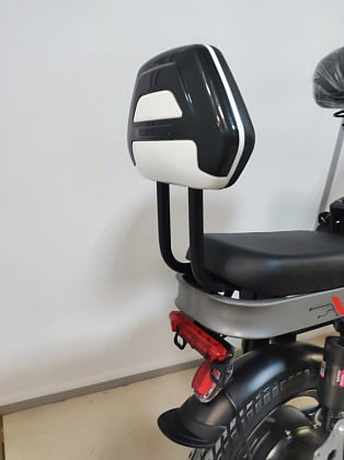- В данной модели багажник можно использовать как для перевозки грузов, так и для перевозки пассажира. Для комфорта пассажира изготовлено мягкое полиуретановое сидение, также предусмотрены подставки для ног пассажира.