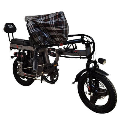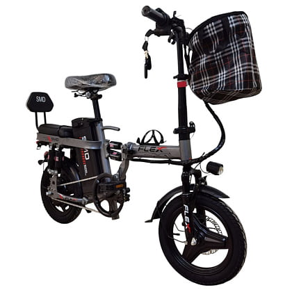 - SMD Flex со складной рамой и широким удобным сиденьем с амортизацией в виде подседельных пружин, представляет собой компактный электровелосипед. А передняя амортизация сделает езду по бездорожью максимально приятной и комфортной.