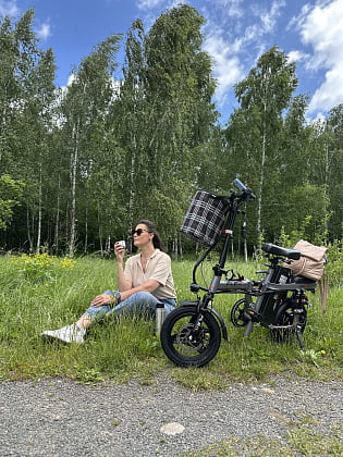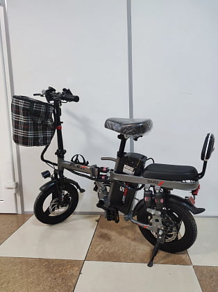 - Данная модель занимает минимум места в сложенном виде, т.к. она складывается пополам, по центру рамы, а также напополам складывается рулевая стойка. В сложенном виде она легко расположится в багажнике автомобиля, в помещении или в общественном транспорте. Складывается без усилий, необходимо просто потянуть за рычаг зажима на раме или на руле, и он сложится. Также, просто и быстро электровелосипед собирается. Не смотря на компактный размер он обладает мощным мотором 350W.