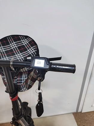 - На руле расположен эргономичный дисплей который отображает уровень заряда батареи, звуковой сигнал, ручка газа.