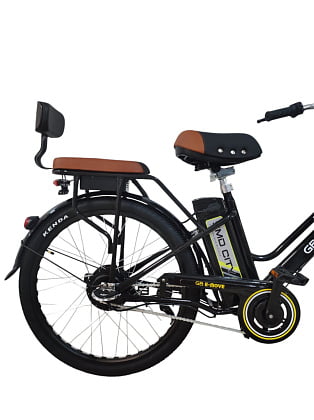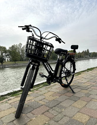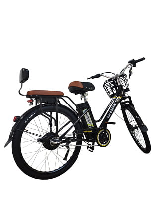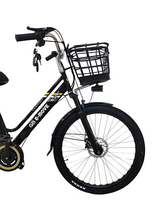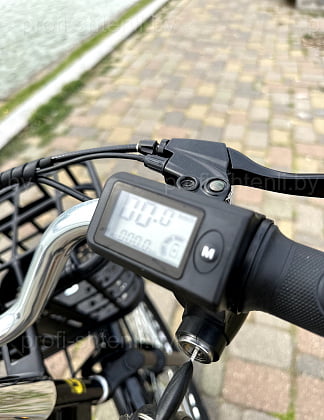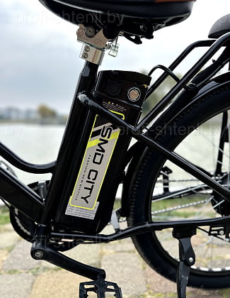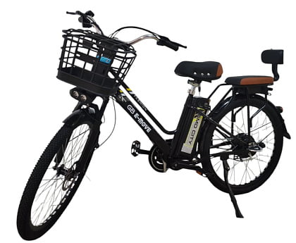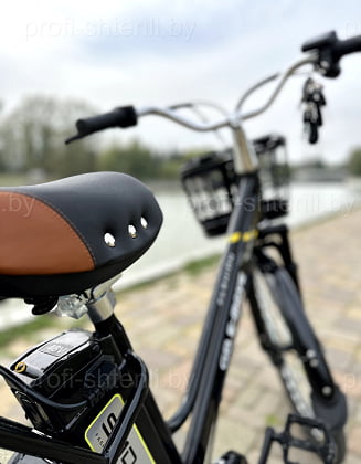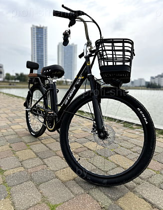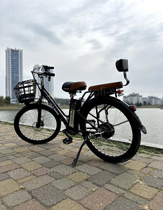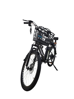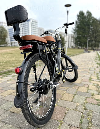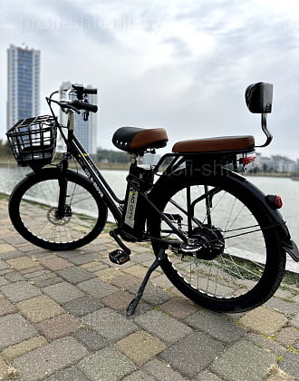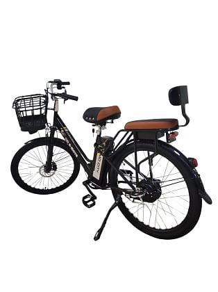 Электровелосипед SMD City с удобной корзинкой и запасом хода до 40км. Регулируемое сиденье для водителя и дополнительное сиденье для пассажира с подставкой для ног.