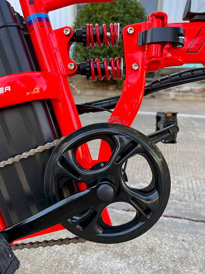 - Передняя амортизационная вилка и двойные амортизаторы в центре и сзади обеспечивают мягкость при езде по городским неровностям.