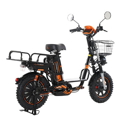 Конструкция электровелосипеда предусматривает наличие амортизационной системы, что обеспечивает комфорт на неровных дорогах, а широкие шины с протектором — отличное решение для езды по бездорожью. Спереди расположена вместительная корзинка для быстрой загрузки, а яркая LED-фара повышает безопасность в темное время суток. Еще одним важным преимуществом является съемный аккумулятор, что облегчает его зарядку и обслуживание.