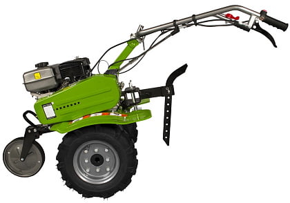 Конструкция мотокультиватора продумана до мелочей: он имеет сбалансированный корпус и эргономичную рукоятку, что делает управление комфортным даже при длительной эксплуатации. Благодаря наличию опорного колеса перемещение мотокультиватора стало максимально простым и не требует больших усилий.