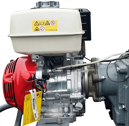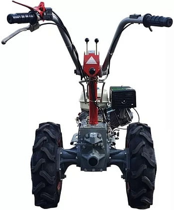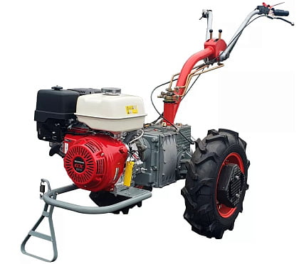 Модель мотоблока оборудована оригинальным двигателем Honda GX260 мощностью 9 л.с., запускаемым при помощи электрического стартера. Поддерживает шесть скоростей движения - четыре передних и две задние. Скорость движения агрегата достигает 16 км/ч, а тяговое усилие - 140 кгс. В комплектации с большими колесами Индийского производителя MRL - имеют повышенную мягкость и увеличенный размер.