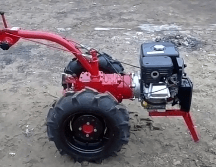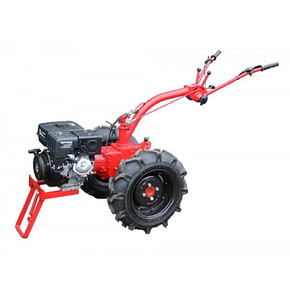 Коленчатый вал вращается со скоростью 3600 оборотов в минуту. Работает на бензине АИ-92. Объем бака шесть литров. Малый объем мотоблока не мешает ему справляться с большим объемом работ без дозаправки. Имеется коробка передач на 6 скоростей: четыре вперед и две назад. Такой набор скоростей дает мотоблоку хорошую маневренность. Несмотря на приличный вес в 145 кг мотоблок способен выжимать скорость в 12 км\ч. Двигатель запускается при помощи ручного стартера. Высокую проходимость технике обеспечивают пневматические колеса со специальным протектором и большим радиусом. Мотоблоки компании Беларус можно использовать в тяжелых условиях. Они не прихотливы в использовании.