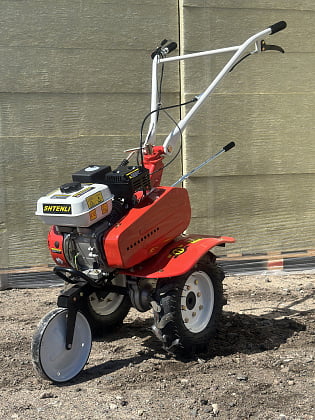 Еще одно важное достоинство — высокая надежность. Мотоблок оснащается одним из новейших двигателей — GX220 объемом 211 см³. Ручной стартер снижает вероятность отказов на уровне электрики. Воздушная система охлаждения Shtenli давно доказала свою эффективность. вид сбоку