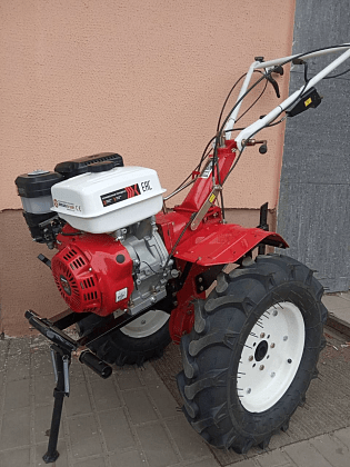 • Устойчивые колеса, мощный мотор — такое оснащение позволяет работать даже с целинным участком.
