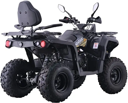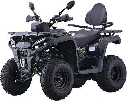 Квадроцикл выделяется автоматической трансмиссией с режимами вперед, нейтраль и задний ход, а также наличием как электростартера, так и механического старта. Балансировочный вал эффективно снижает вибрации, способствуя комфортной и плавной езде. Гидравлические дисковые тормоза на обеих осях обеспечивают максимально надежное и безопасное торможение вне зависимости от дорожных условий.